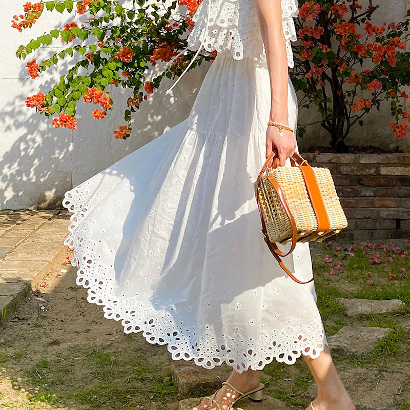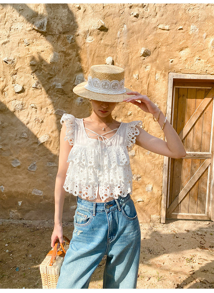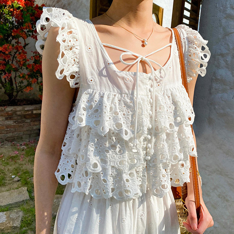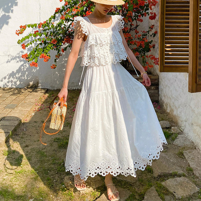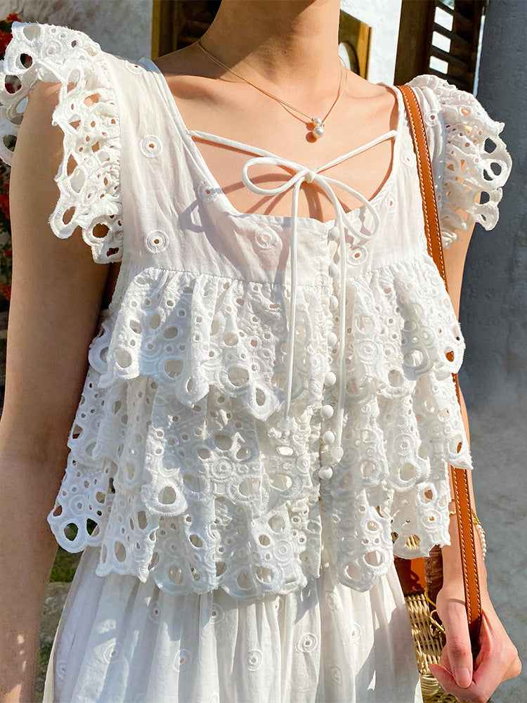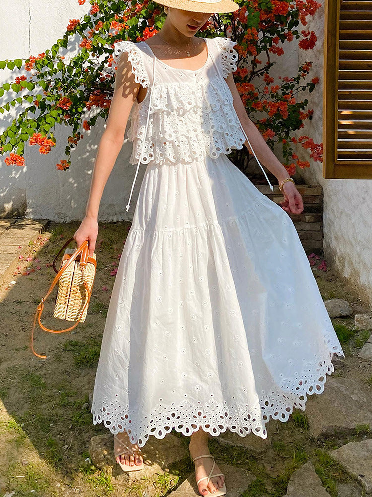 Dantel işlemeli detayları, kat kat volanlı üstü ve fırfırlı etek kesimiyle hem zarif hem de konforlu. Günlük yaz kombinlerinden tatil valizine kadar her yerde seninle.