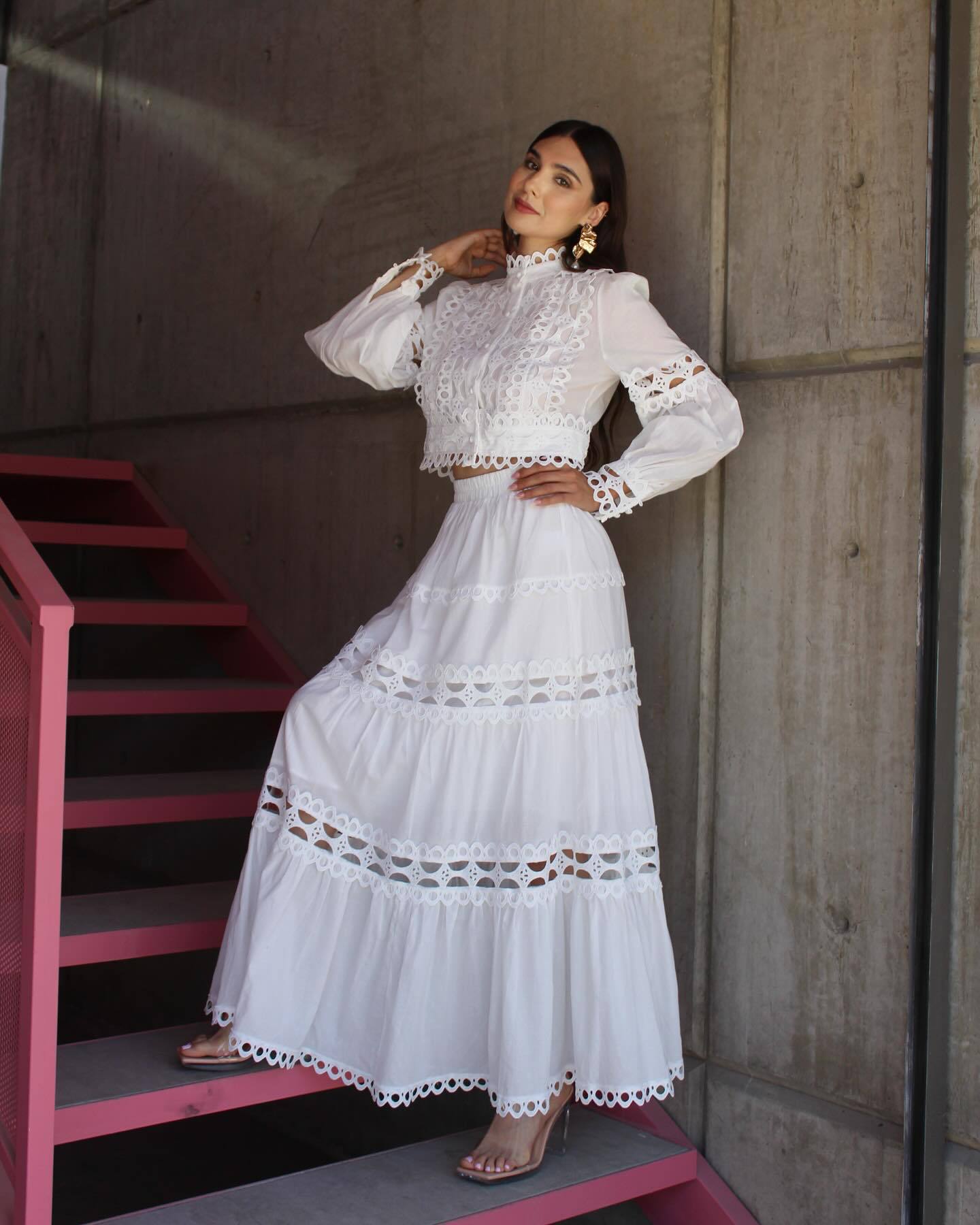 Yüksek kaliteli dokuma kumaşı, incelikle işlenmiş dantel detayları ve nostaljik duruşuyla bu ikili takım, modern prenseslere özel!