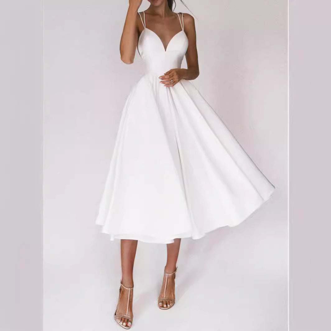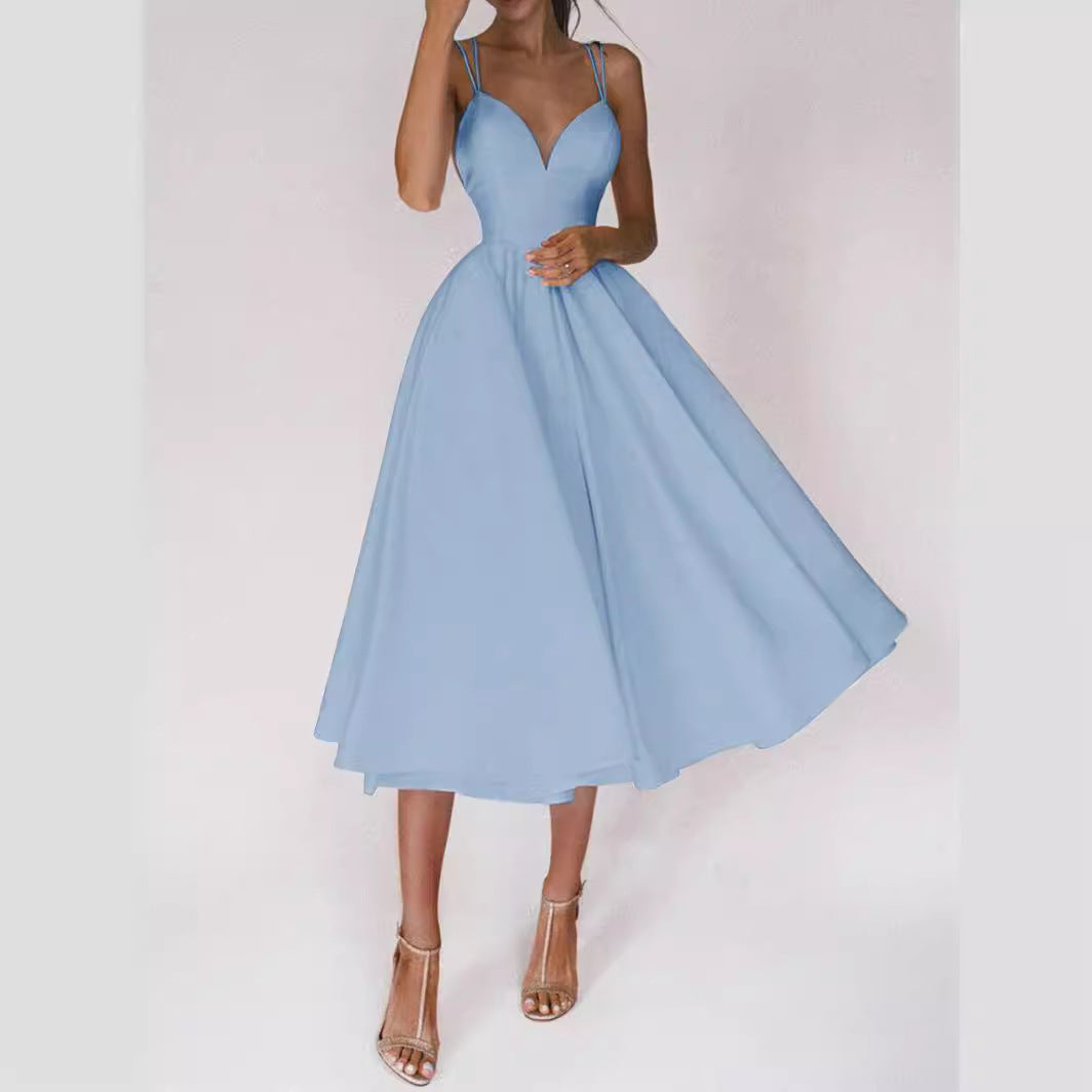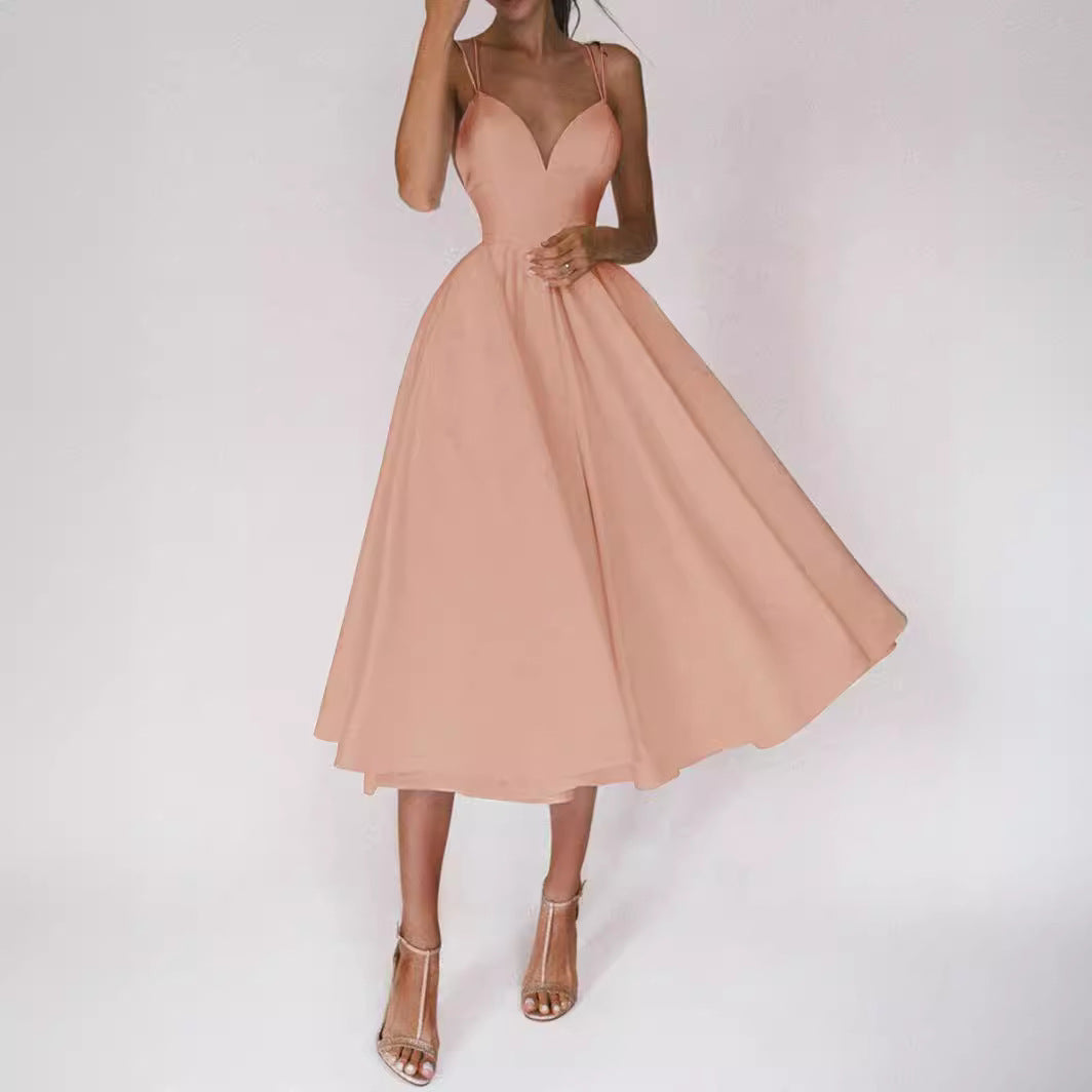 Zamansız şıklığın vücut bulmuş hali: La Mode Royale™ Askılı A Kesim Midi Elbise ile her adımda zarafeti hisset!