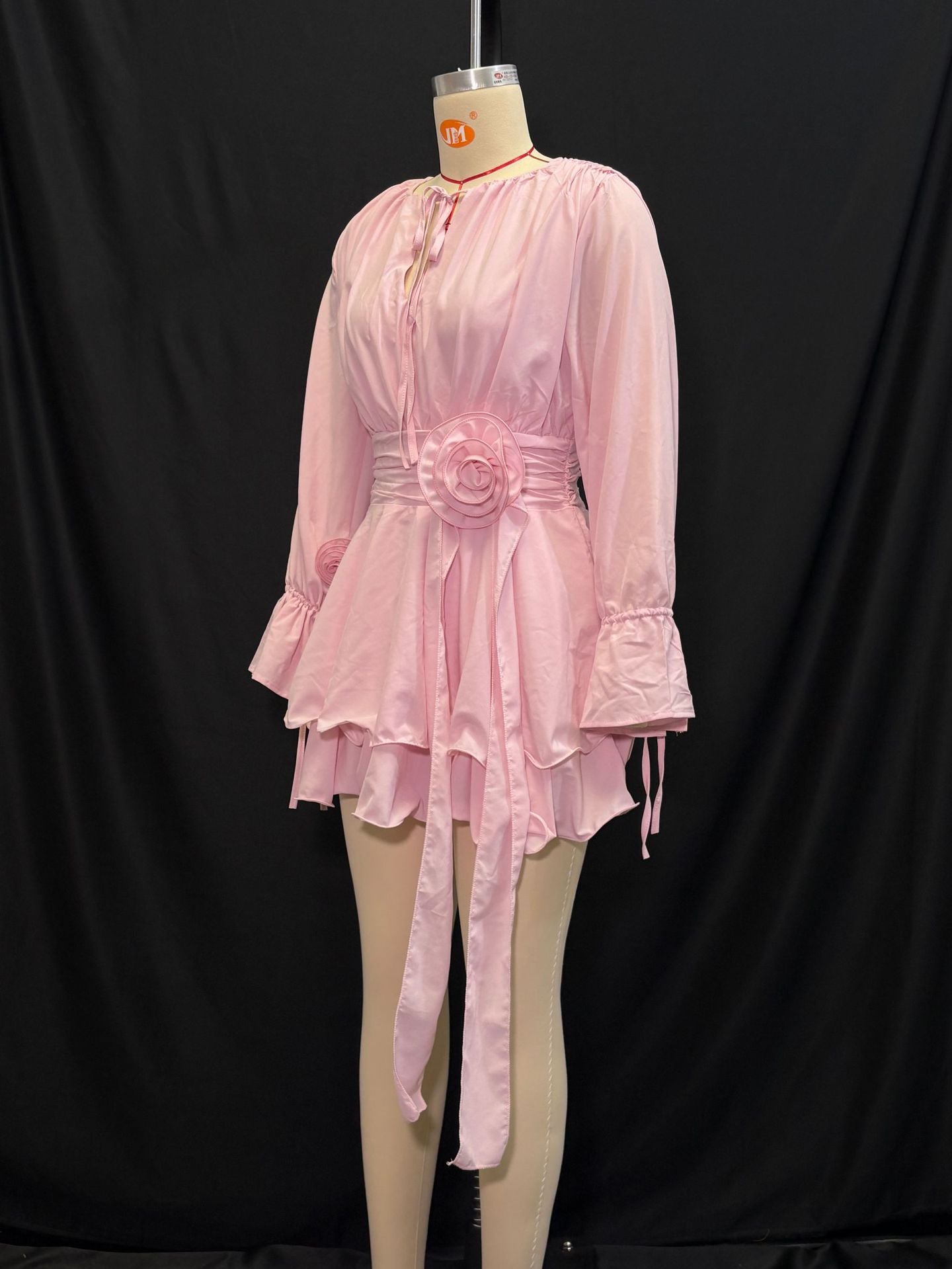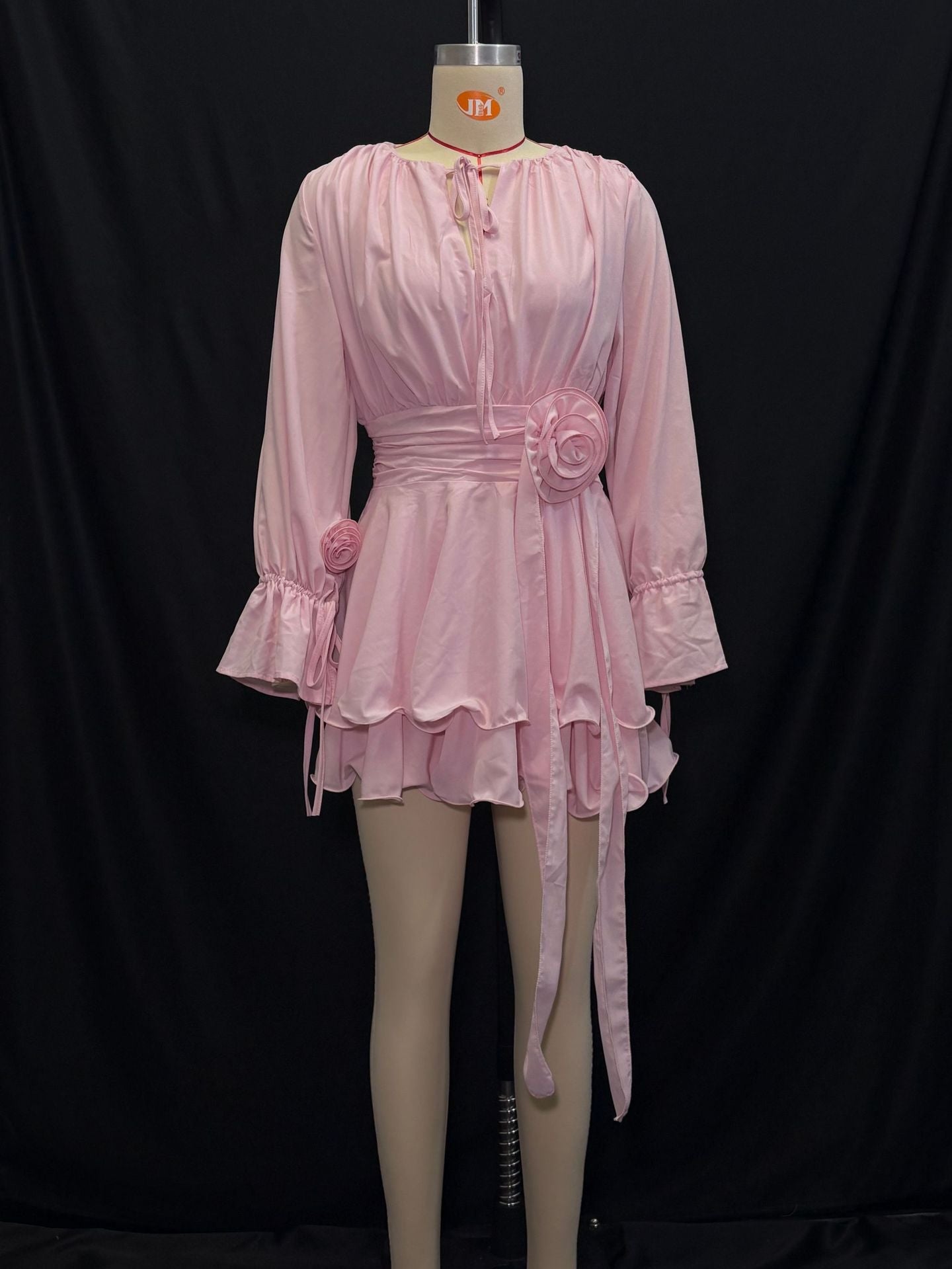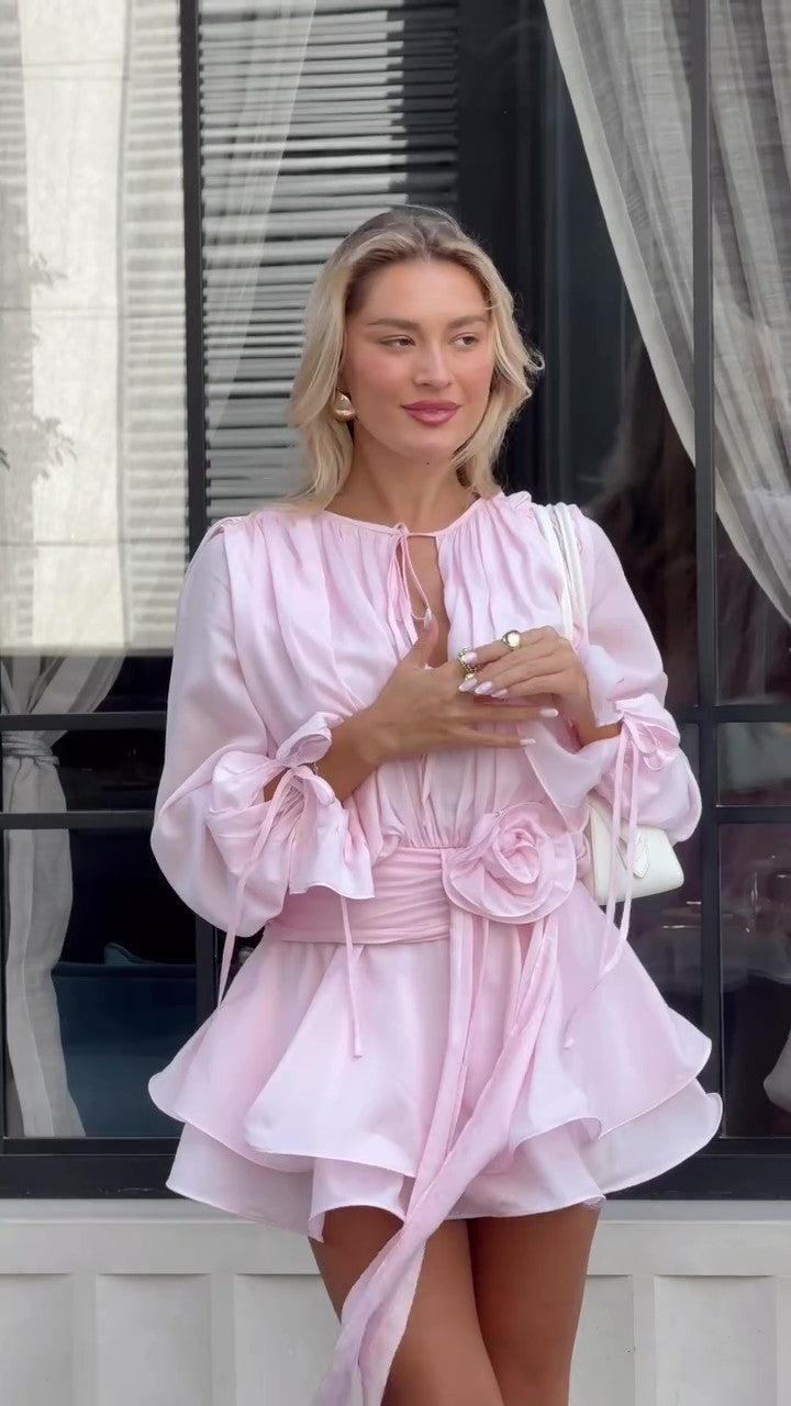 Lamoderoyale™ | Rosé Bloom Fırfırlı Mini Elbise