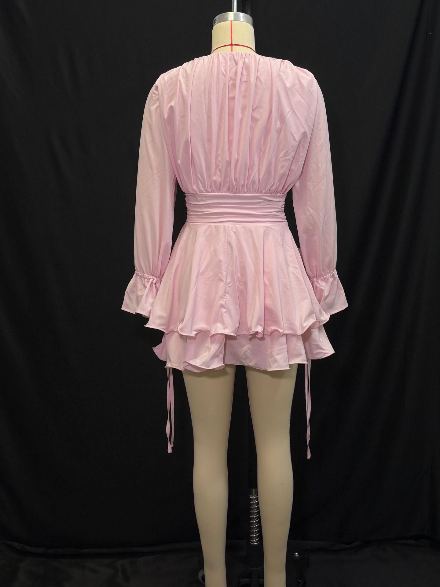 - Fırfırlı mini eteği, uzun ve volanlı lale kolları ile tatlı-şık bir tarz sunar.