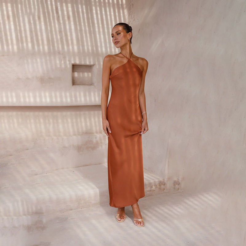 Minimalist zarafetiyle öne çıkan bu saten elbise, zarif askı detayı ve sırt dekoltesiyle tüm gözleri üzerinize çekmeye hazır. Akıcı ve dökümlü yapısı sayesinde vücudu mükemmel şekilde sararken, ince dokusu yaz davetlerinin vazgeçilmezi olmaya aday. Hem sade hem etkileyici bir görünüm sunan bu model, şıklığını konforla buluşturmak isteyen kadınlar için tasarlandı.